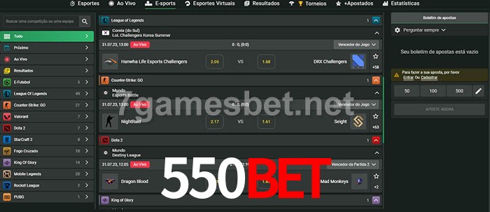 A aposta 550bet oferece aos jogadores a experiência mais conveniente de apostas em eSports!
